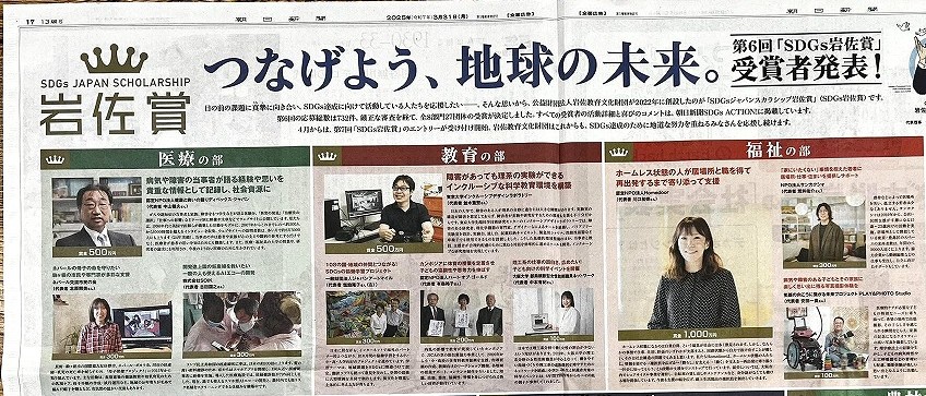 2025年3月31日に 第6回「SDGs岩佐賞」受賞(教育の部)を受賞しました。