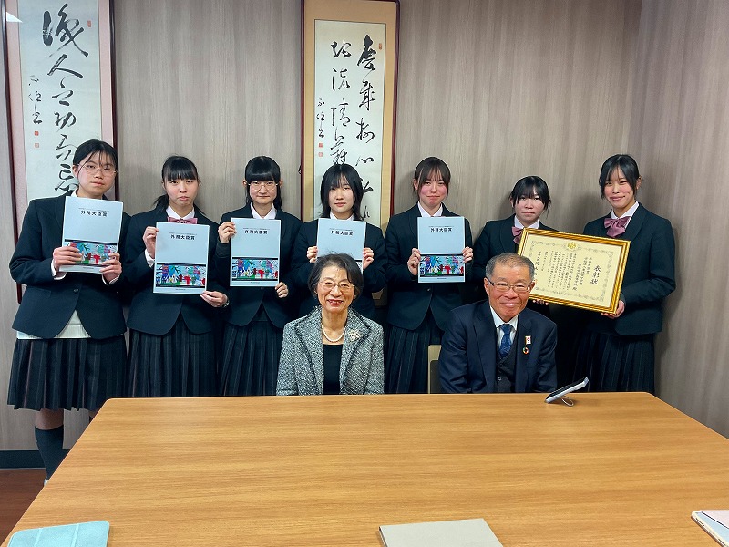 東洋女子高校は2019年度より継続して「グローバル学習」として「アートマイル国際協働学習」に取り組んでいます。2025年度はリトアニアの Laurynas Ivinskis 校と「つくる責任 つかう責任」「陸の豊かさも守ろう」をテーマに比較と対話を重ねて深めた協働学習が評価されて「外務大臣賞」を受賞し、3月13日に表彰式が行われました。
