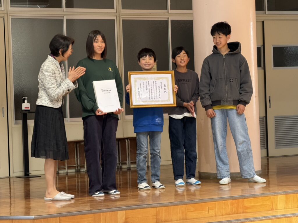 赤穂市立原小学校(兵庫県)は、「2025年度アートマイル国際協働学習プロジェクト」において、台湾の双渓小学校と「住み続けられるまちづくりを」と「つくる責任 つかう責任」をテーマに、対話を重ねて学び合った協働学習が評価されて「財団特別賞」を受賞し、3月17日に表彰式が行われました。
